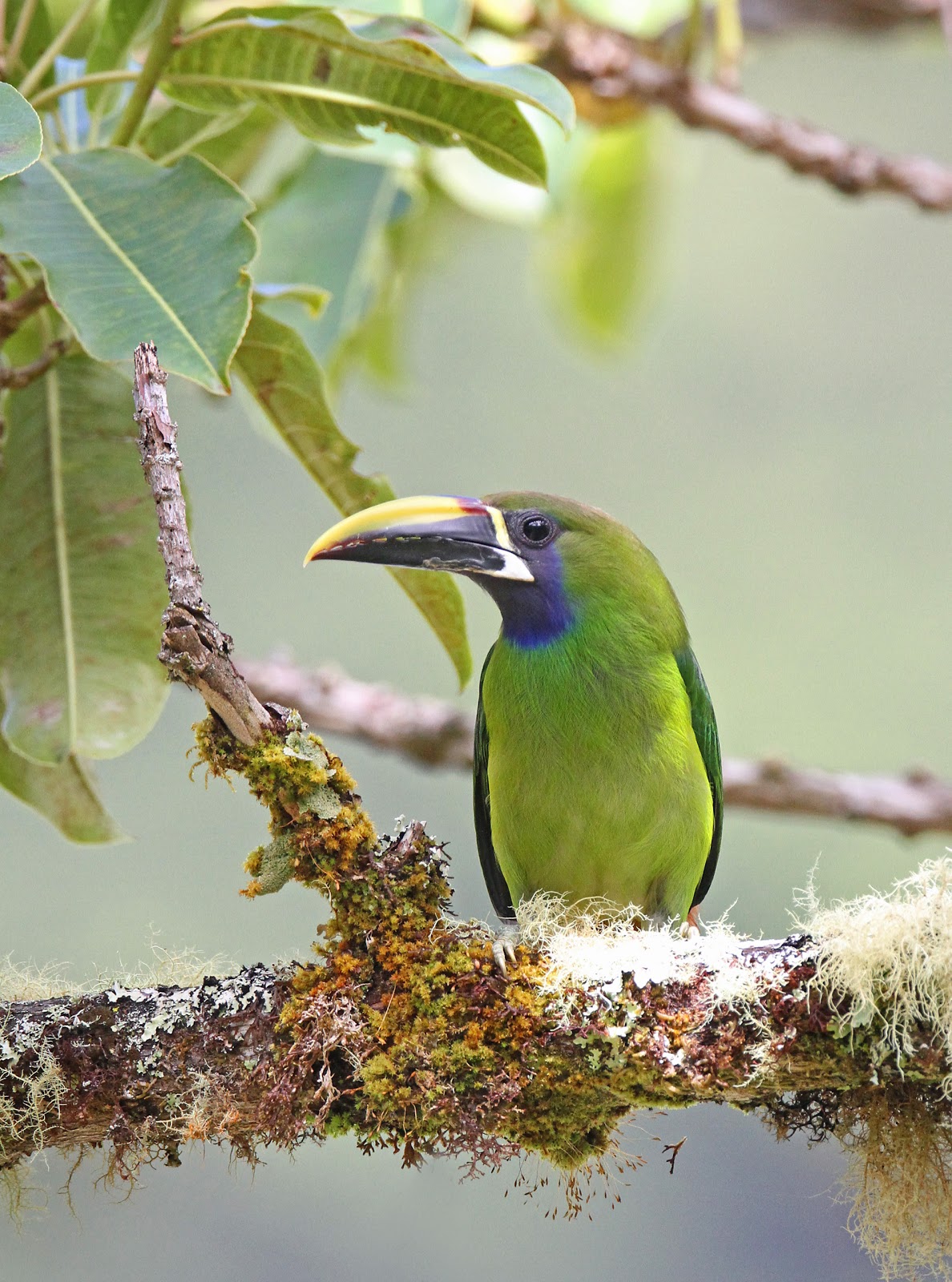 the commotion. High in the moss-covered branches, the aggressive, nest-marauding Emerald Toucanette were making their rounds. This scene yielded one of our favorite images of the trip.